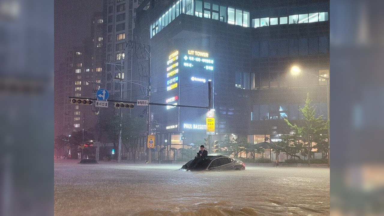 De nombreuses photos et vidéos montrent des rues de Séoul et de ses environs complètement submergées.