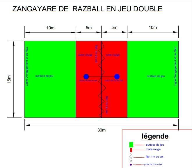 Le mot “razball”, littéralement “balle qui rase le sol”, résume bien le principe du jeu : deux équipes de cinq joueurs au total, avec seulement deux joueurs sur le terrain, qui s’affrontent sur une surface de 30 mètres sur 15, séparée au milieu par un filet à une hauteur d’un mètre.