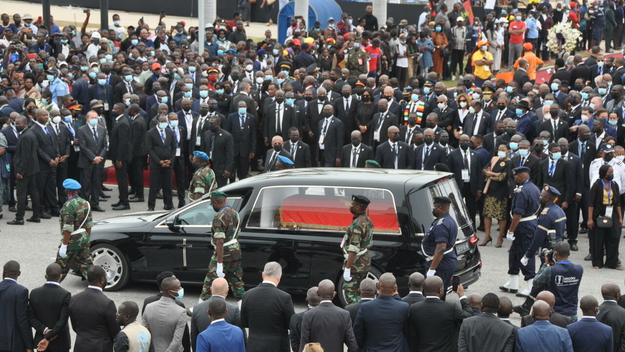 Plus d’un millier de personnes étaient présentes aux funérailles sur la place de la République, dans le centre de la capitale. Des drapeaux noirs étaient en berne et sur de grandes affiches, le message : “Adieu, président, ami”. Plusieurs chefs d’État et de gouvernement étaient présents dont les présidents du Portugal, d’Afrique du Sud et de République démocratique du Congo.