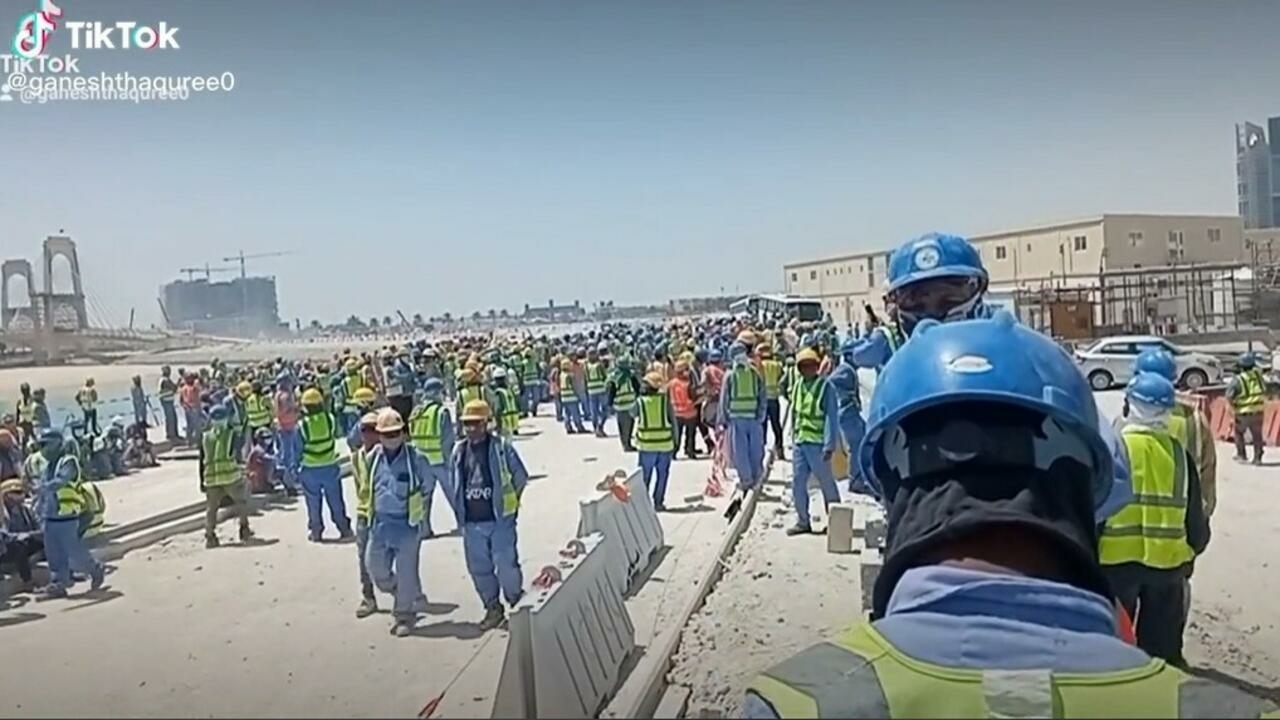 Dans une vidéo de la manifestation du 14 août à Doha, on voit des dizaines d’ouvriers rassemblés devant le siège de l’entreprise, bloquant la route dans le centre de Doha.