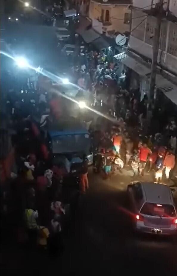 Le 8 septembre au soir, des manifestants ont traversé Mirontsy pour exiger la libération des jeunes arrêtés la veille, enflammant des pneus sur leur passage.